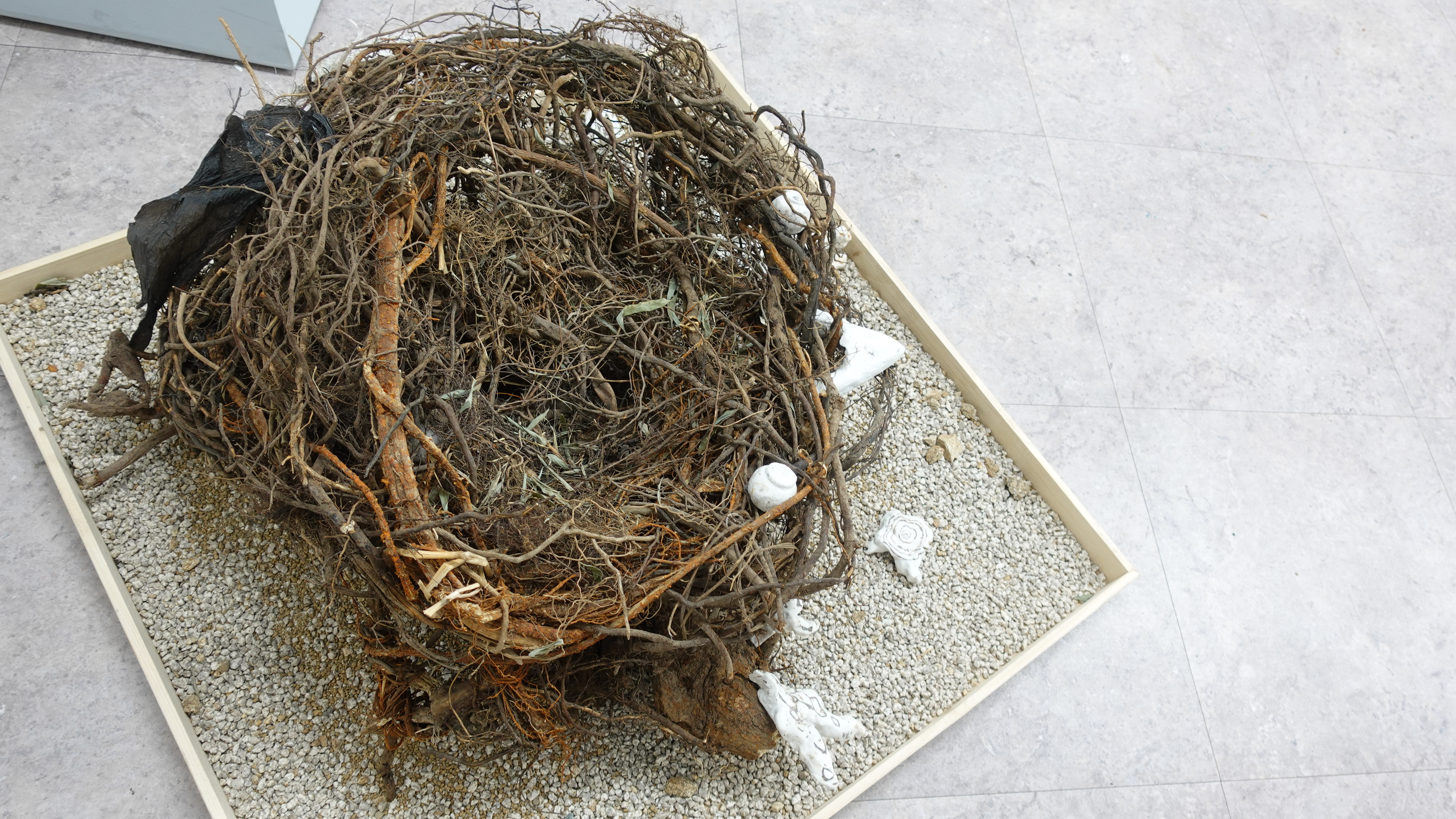 나무의 뿌리를 모아 만든 새이자 둥지이다. 땅 속 깊이 숨겨져 있던 뿌리를 밖으로 꺼내 보인다. 무엇인가를 이루기 위해 끝없이 모으다 보면, 결국 그 이유를 잃어버리기도 한다. 날개를 잃은