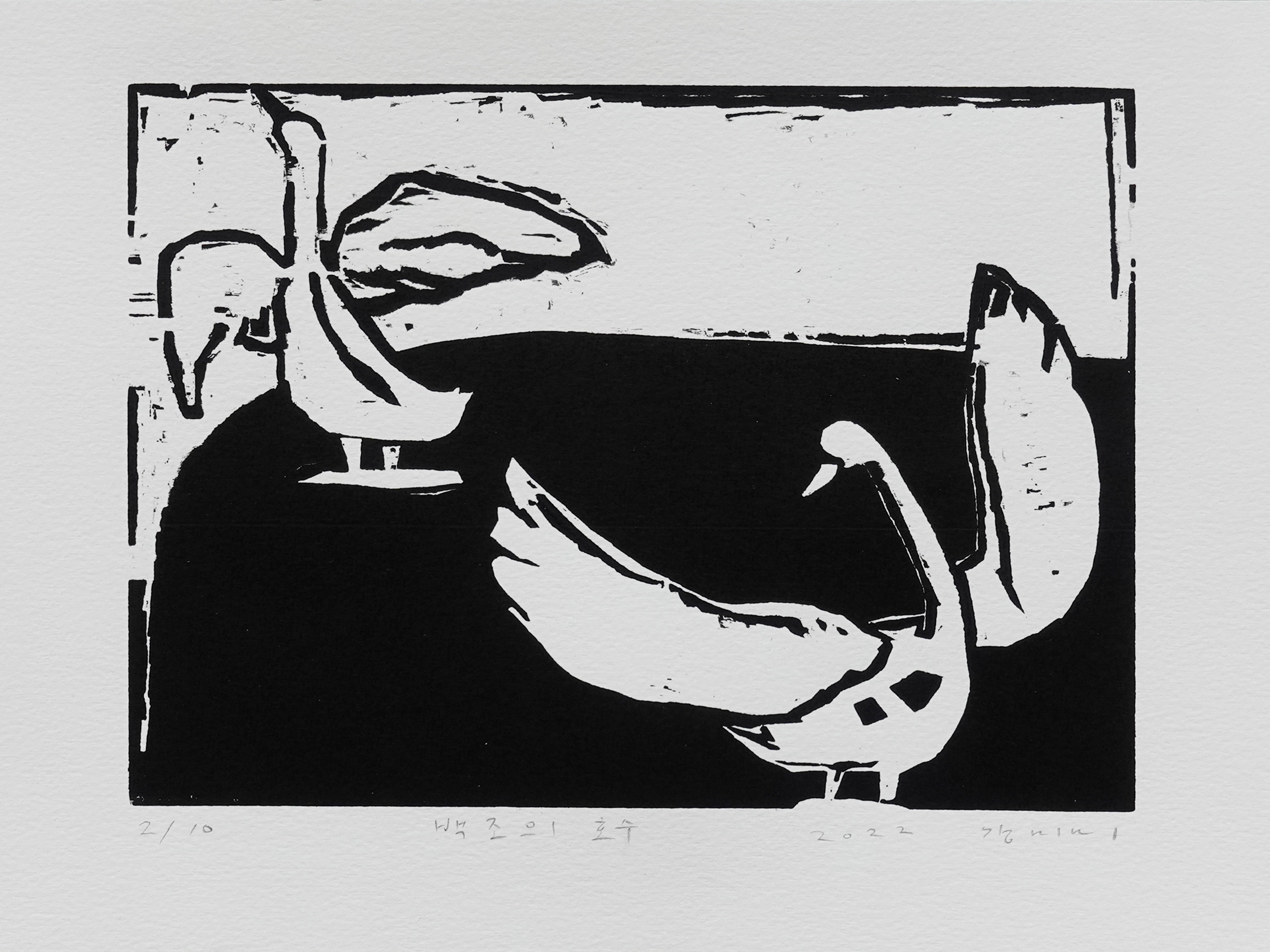 <백조의 호수-Swan lake(ed. 2 of 10)>, 2022, Woodcut, 18.8×25.2cm(종이 사이즈 24×32cm)