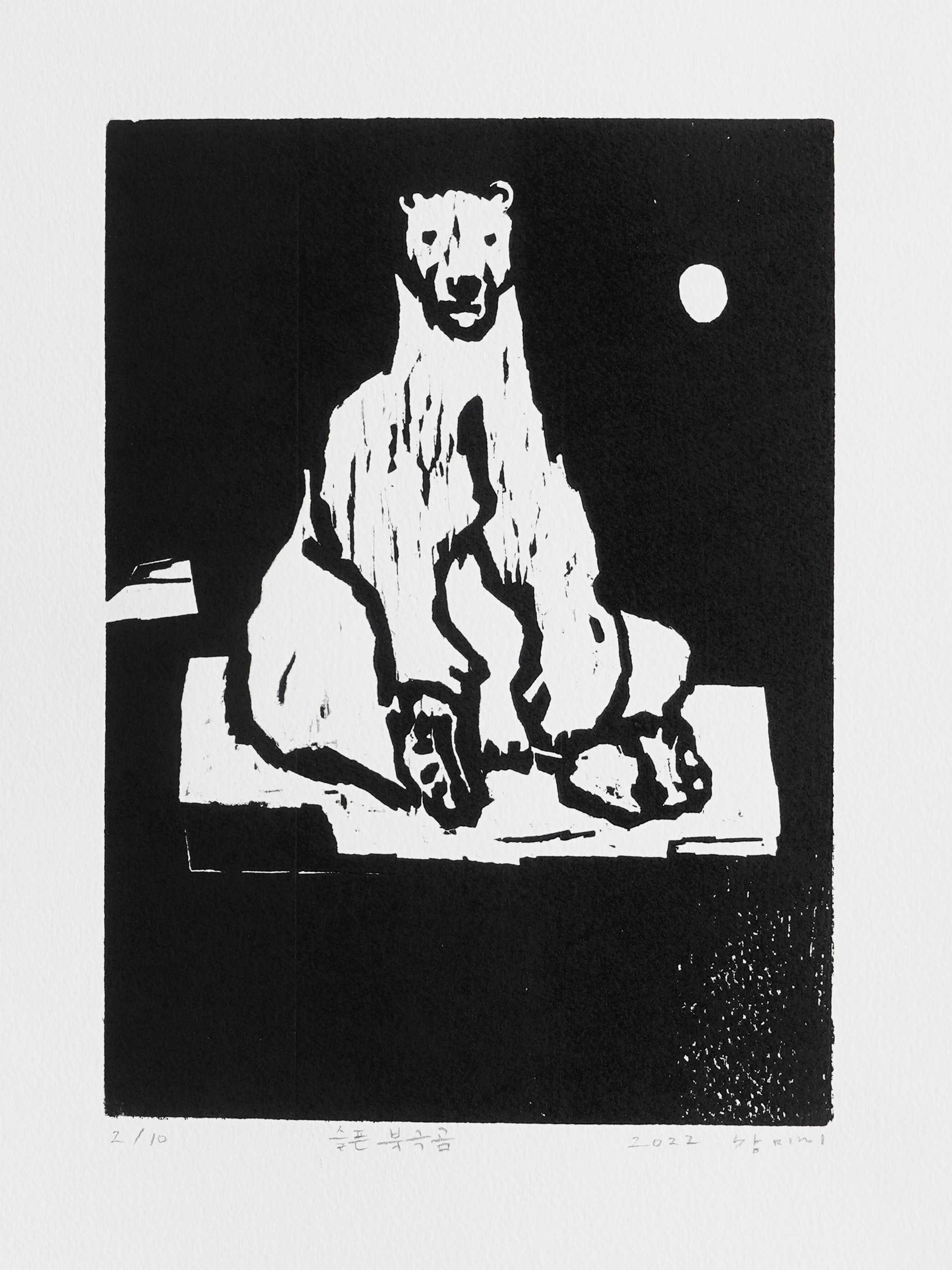 <슬픈 북극곰-A sad polar bear(ed. 2 of 10)>, 2022, Woodcut, 25.2×18.2cm(종이사이즈 24×32cm)