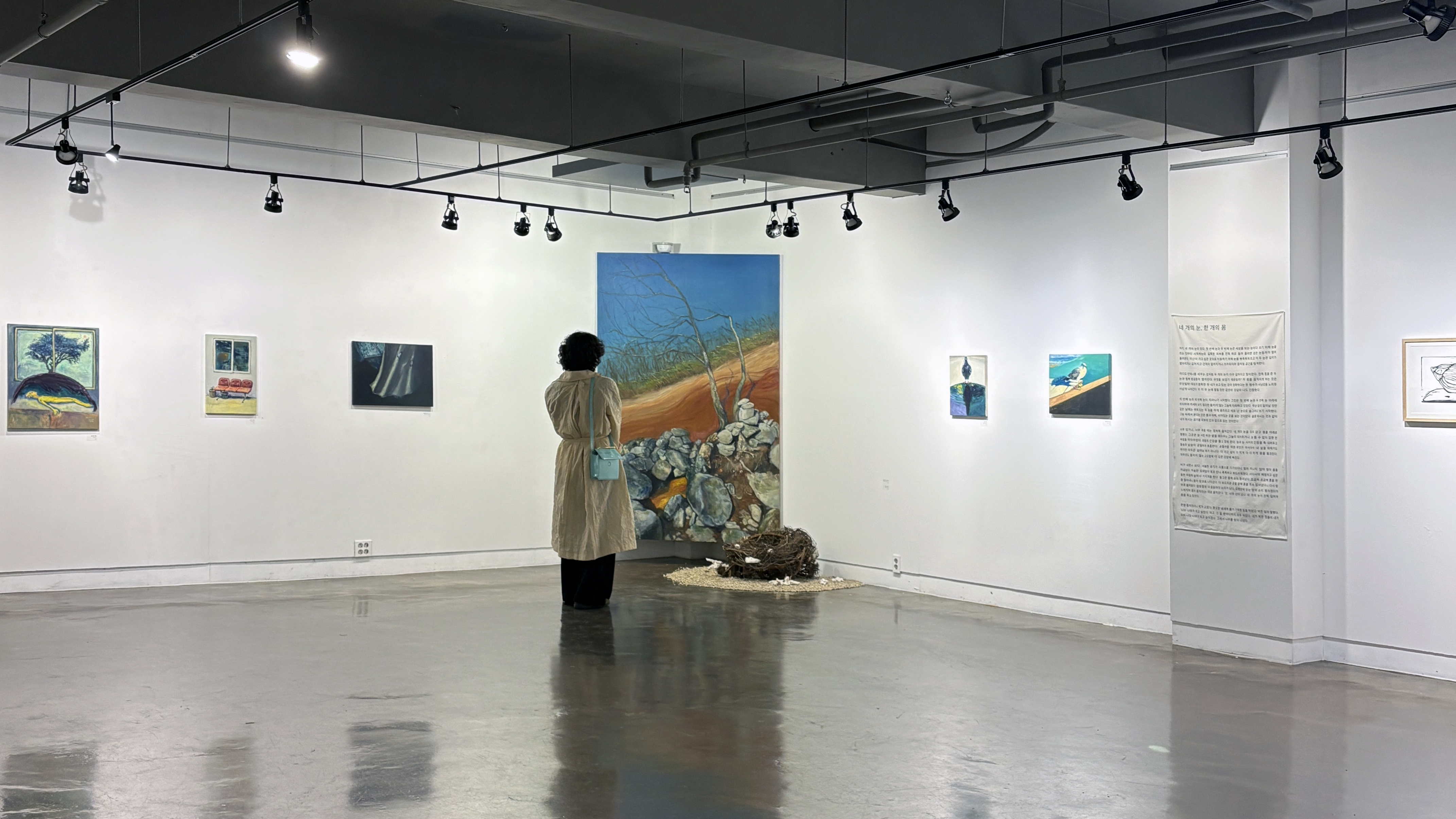 〈잃어버린 바다, 2025〉는 바다를 등지고 보도블록 위에 선 도시 갈매기의 형상을 담은 작업이다. 먹이의 터전이던 바다는 상실되고, 도시는 생존을 위한 대체 공간이 된다. 자연과 도시 사이에